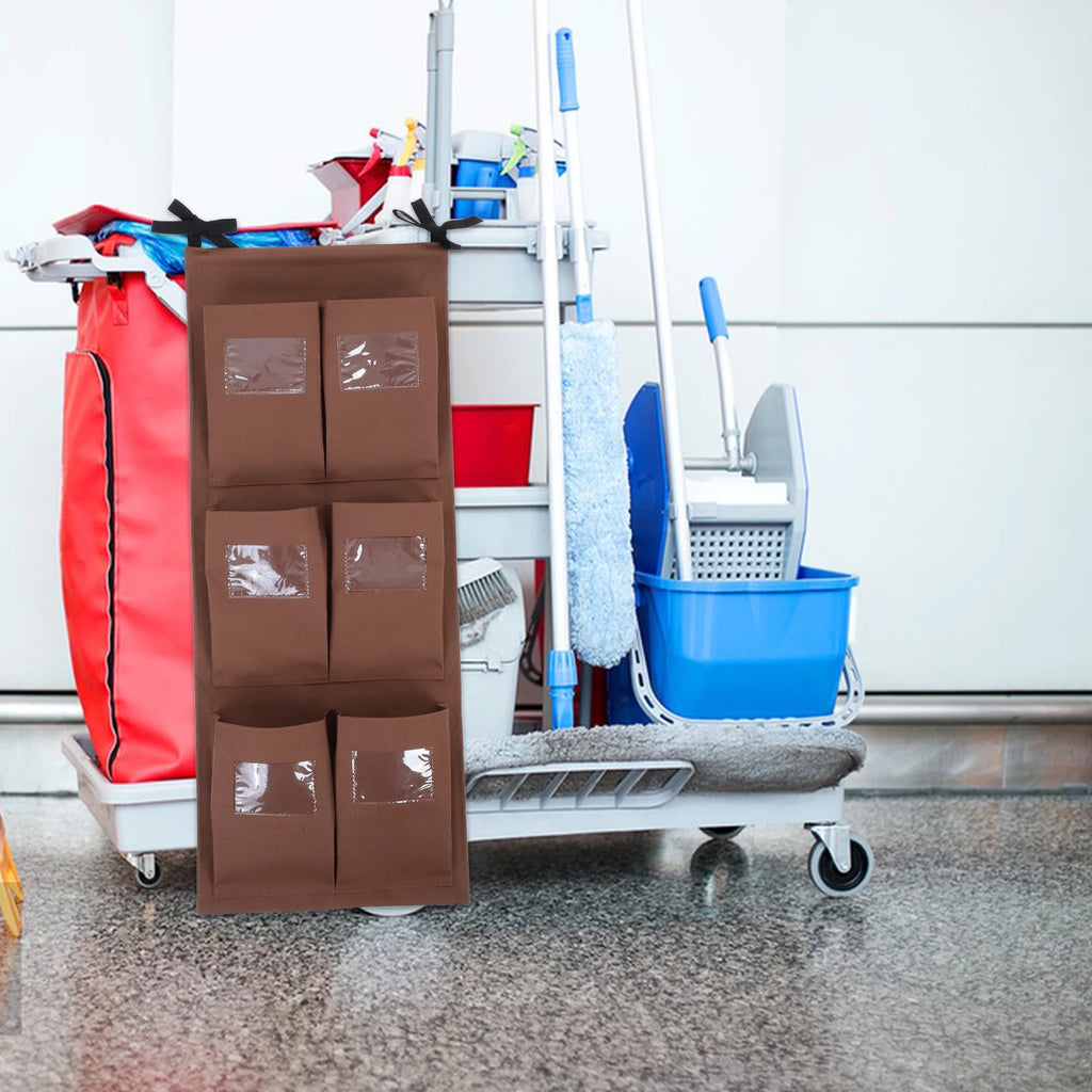 -Large capacity: features vertical cloth pockets with transparent labels, providing ample space for various sizes of cloths and cleaning supplies